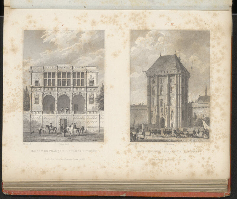 Egzemplarz niekomplety, tabl. od 29-34 i 56-65, prawodopodobie z opracowania "Reproduction des grands ouvrages d'Architecture du XVIIIe Siècle", oprawa z 1958 r.