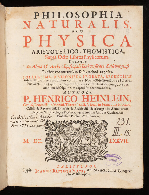 Akademia Chełmińska powstała w końcu XVII w. na miejscu reaktywowanego Gimnazjum Chełmińskiego. Od 1756 r. Akademia podporządkowana została organizacyjnie i naukowo Uniwersytetowi Krakowskiemu jako jego kolonia. W Akademii zgromadzono pokaźny księgozbiór. Niewielka część księgozbioru (około 20 wydawnictw) powstała też w przyszkolnej drukarni, założonej przez misjonarzy w 1764 r.