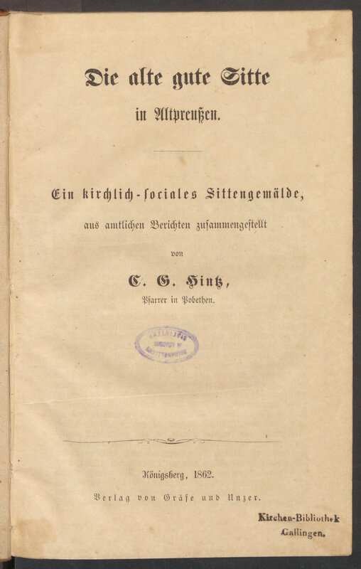 * Tekst jest fragmentem artykułu: Awianowicz Magdalena, Stare druki z biblioteki ewangelickiego kościoła w Galinach w zbiorach Biblioteki Uniwersyteckiej w Toruniu, W: Księgozbiory historyczne mniejszości etnicznych i religijnych, Wrocław 2024, s. 355-367.
