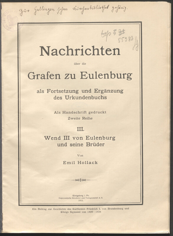 DEEvangelische Gemeinde aus Gallingen bei Bartenstein (darunter Sammlung der Adelsfamilie Eulenburg von Gallingen)