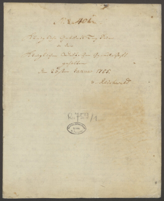 Opisywana jednostka jako fizyczna całość powstała w latach 50-tych XX w. podczas inwentaryzacji. Połączono wówczas dwie różne proweniencyjnie części; pierwsza to archiwalia pochodzące z Königliche Deutsche Gesellschaft w Królewcu, a druga to materiały Kurländische Gesellschaft für Literatur und Kunst w Mitawie. Błędnie założono, że obydwie części stanowią rękopisy pochodzące z Królewca