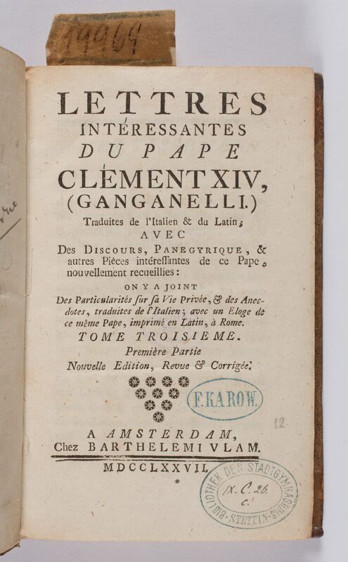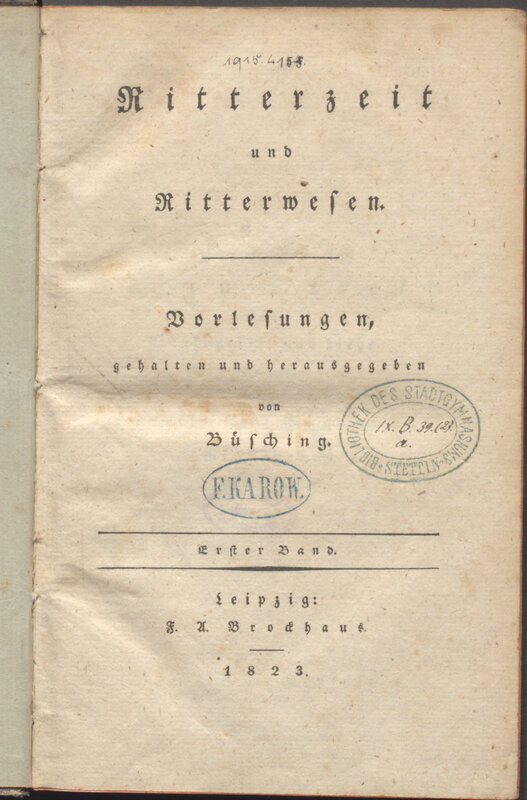 Dokumenty, głównie katalogi, inwentarze i wykazy darów biblioteki gimnazjum, zszyte w kodeks przez Johanna Carla Conrada Oelrichsa profesora gimnazjum w 1768 r.