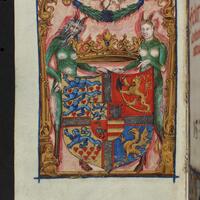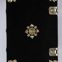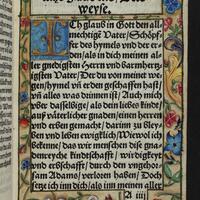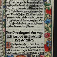 - [72, 1 czysta] karta, sygnowanie A-H8 ; 8° ; Błędne oznaczenie składki A3 jako "B3" ; Modlitewnik nie notowany w bibliografiach. Jedyny znany obecnie egz. (BU UMK) drukowany na pergaminie dla księżnej Doroty, pierwszej żony Albrechta Hohenzollerna, zaliczany do tzw. srebrnej biblioteki. Egz. ręcznie zdobiony bordiurami roślinnymi i zoomorficznymi, ze złoceniami, z przedstawieniami nawiązującymi do bajek Ezopa, z warsztatu Nikolausa Glockendona. Na dodatkowej k. przytytułowej ręcznie malowany herb księżnej ; Zapisy proweniencyjne: D 10 [sygnatura] ; Silberbibl. 27. [sygnatura] ; Ce 1070 Oct. [sygnatura] ; Proweniencje: 1. Dorota (księżna pruska ; 1504-1547). 2. Schlossbibliothek, Königsberg. 3. Königliche- und Universitätsbibliothek Königsberg. 4. Staats- und Universitätsbibliothek zu Königsberg. ; Oprawa: czarny jedwabny aksamit na desce, pozłacane srebrne okucia i guzy, srebrne zapinki i klamry. I poł. XVI w.