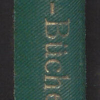 6. Sygnatura na górnej okładzinie lub grzbiecie w części drukowana, w części pisana odręcznie atramentem na prostokątnej nalepce ze ściętymi narożnikami z nadrukowaną kolorową obwódką.