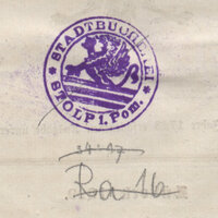 2. Pieczątka okrągła fioletowa: Stadtbücherei Stolp (Pom.)