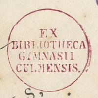 1. Pieczątka "Ex Bibliotheca Gymnasii Culmensis"