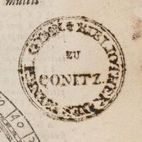 1. Pieczątka okrągła z napisem w otoku: BIBLIOTHEK DES KÖNIGL. GYMN. ZU CONITZ.