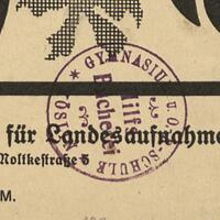 5. Okrągła pieczątka: Gymnasium u. O.-R.-Schule Köslin Hilfs-Bücherei -
