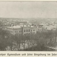 - Gimnazjum w Słupsku wywodziło się z instytutu kościelnego istniejącego od 1535 r. W 1796 r. zniszczony budynek szkoły odbudowano, a w 1837 r. Ratsschule podniesiono do rangi wyższej szkoły miejskiej. Po pożarze w 1848 r. powstał nowy gmach, a w 1854 r. nadano jej status szkoły średniej. Rosnąca liczba uczniów oraz brak gimnazjum w regionie skłoniły władze miasta do utworzenia nowej placówki. Zgoda ministerialna zapadła w 1857 r., a pierwszym dyrektorem został dr Kock. W dniu otwarcia gimnazjum uczyło się w nim 290 osób, a w 1873 r. już 651. Szkoła posiadała bibliotekę i zbiory dydaktyczne, m.in. kolekcję przekazaną przez Heinricha von Stephana, byłego ucznia i późniejszego sekretarza stanu. Część dawnych zbiorów trafiła po 1945 r. do Biblioteki Uniwersyteckiej w Toruniu.