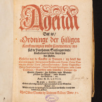 Agenda Dat is, Ordninge der hilligen Kerckenempter vnde Ceremonien, wo sick de Parrherren... - strona tytułowa -