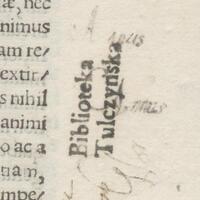 - Zapiski własnościowe; pieczątka: Biblioteka Tulczyńska