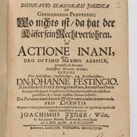 - Disputatio Inauguralis Juridica De Germanorum Proverbio: Wo nichts ist, da hat der Käiser sein Recht verlohren. h.e. De Actione Inani