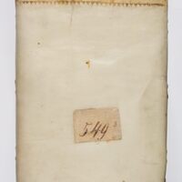 - Zapiska proweniencyjna; nalepka z sygnaturą 549