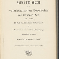 - Karten und Skizzen aus der Vaterländischen Geschichte der Neueren Zeit (1517-1789) : III. Band des "Historischen Kartenwerkes" / zur raschen und sichern Einprägung zusammengestellt und erläutert von Professor Dr. Eduard Rothert. / Vierte und funfte vermehrte und verbesserte Auflage