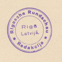 - Pieczątka okrągła niemieckiej codziennej gazety Niemców bałtyckichRigasche Rundschau(1894-1939): Redakcija Rigasche Rundschau