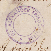 - Pieczęć Alexandra Friedensteina (1874-?), lekarza mieszkającego na Łotwie; opieczętowane są wszystkie karty rękopisu