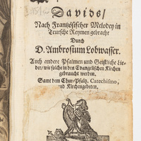- Die Psalmen Davids Nach Frantzzoesischer Melodey in Teutsche reymen gebracht Durch D. Ambrosium Lobwasser. Auch andere Psalmen und Geistliche Lieder wie solche in den Evangelischen Kirchen gebraucht werden. Sampt dem Chur - Pflatz. Catechismo, und Kirchengebeten