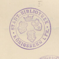 - Piecz. własnościowa Rudolfa Reicke (1825-1905), królewieckiego historyka i filozofa i znawcy twórczości i życia I. Kanta, wydawcy miesięcznika "Altpreussische Monatsschrift".