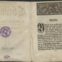 Thornische Chronica in welcher die Geschichte dieser Stadt von MCCXXI bis MDCCXXVI aus bewehrten Scribenten u. glaubw. Documentis zusammengetragen worden - strona z pieczątką: okrągła pieczątka: STADT-BIBLIOTHEK KÖNIGSBERG i. PR. -