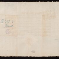 Burmistrz i rada miejska miasta Królewiec wydają poręczenie dla Johanna Michaela Banda z zaleceniem przyjęcia go do organizacji cechowych - sygnatura i pieczęć okrągła: Stadtbibliothek Königsberg i. Pr. (odwrocie dokumentu) -