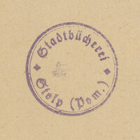 - Pieczątka okrągła fioletowa: Stadtbücherei Stolp (Pom.)