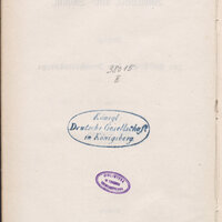 - Pieczątka owalna wkolorze niebieskim: Königl: Deutsche Gesellschaft in Königsberg. Grzbiet książki - sygnatura K.D.G. 1579.
