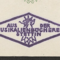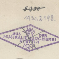 - Pieczatki: Aus der Musikalienbücherei Stettin ; Aus der Stadtbibliothek Stettin; nalepkowa i ołówkowa sygnatura Mx 1491