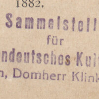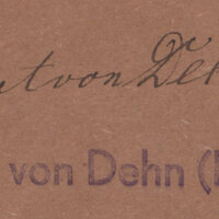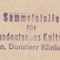 - Pieczątka (Erwin von Dehn (Haallist) oraz odręczny podpis Erwin Karl Reinhold von Dehn (1862-1949 ; Sammelstelle füü baltendeutsches Kulturgut. Posen, Domherr Klinkestr. 1