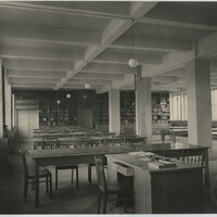 Biblioteka Uniwersytecka w Toruniu, wnętrze czytelni w gmachu przy ul. Chopina, ca. 1947