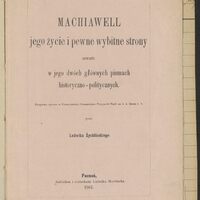 - Machiawell : jego życie i pewne wybitne strony zawarte w jego dwóch głównych pismach historyczno-politycznych : rozprawa czytana w Towarzystwie Poznańskiém Przyjaciół Nauk na d. 4 marca r. b.