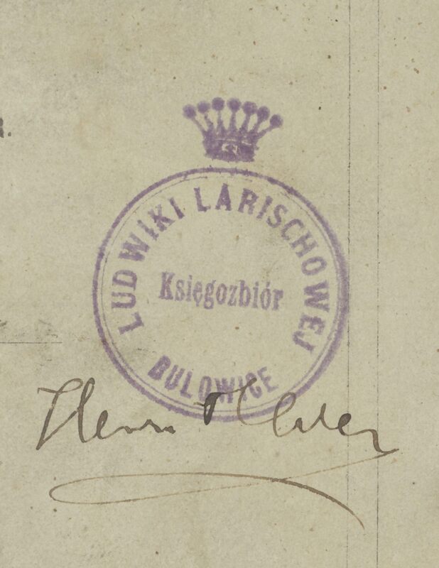 Książka ze zbiorów rodziny Ślaskich z Wabcza. Ludwika Larischowa była matką Anny, żony Witolda Ślaskiego