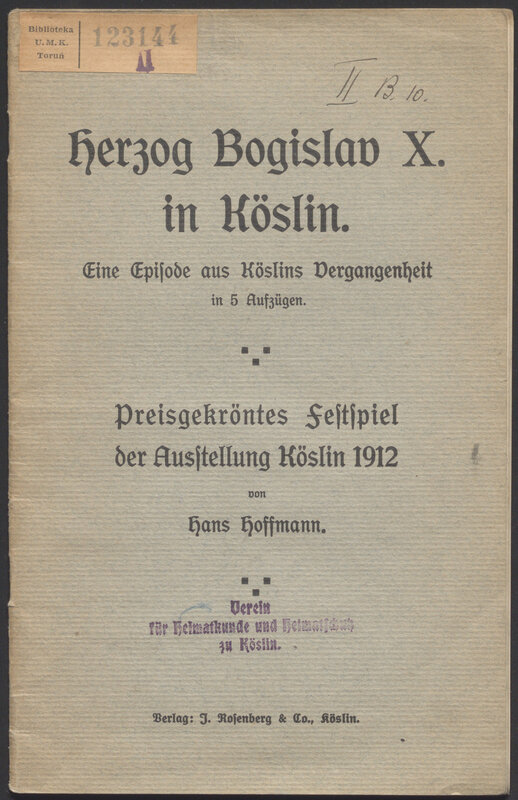 Herzog Bogislav X. in Köslin : eine Episode aus Köslins Vergangenheit in 5 Aufzügen
