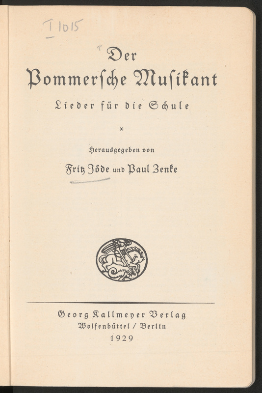 Der pommersche Musikant. Lieder für die Schule - s. tyt. recto