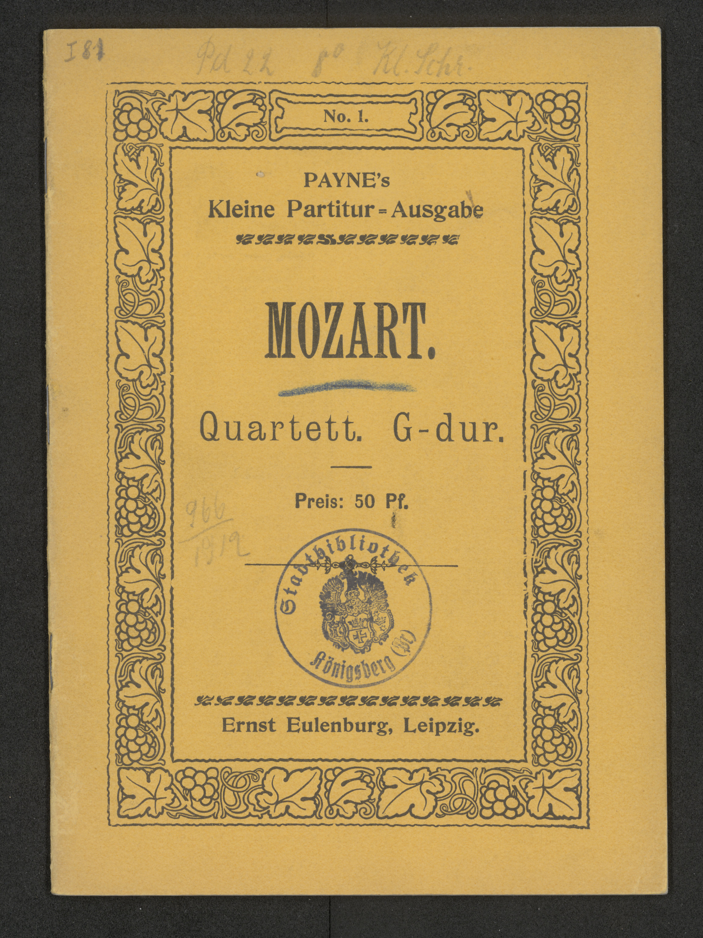 Quartet No. 1 G-dur für 2 Violinen, Viola und Violoncell. Jos. Haydn gewidmet - recto okładki - pieczątka okrągła: Stadtbibliothek Königsberg (Pr)