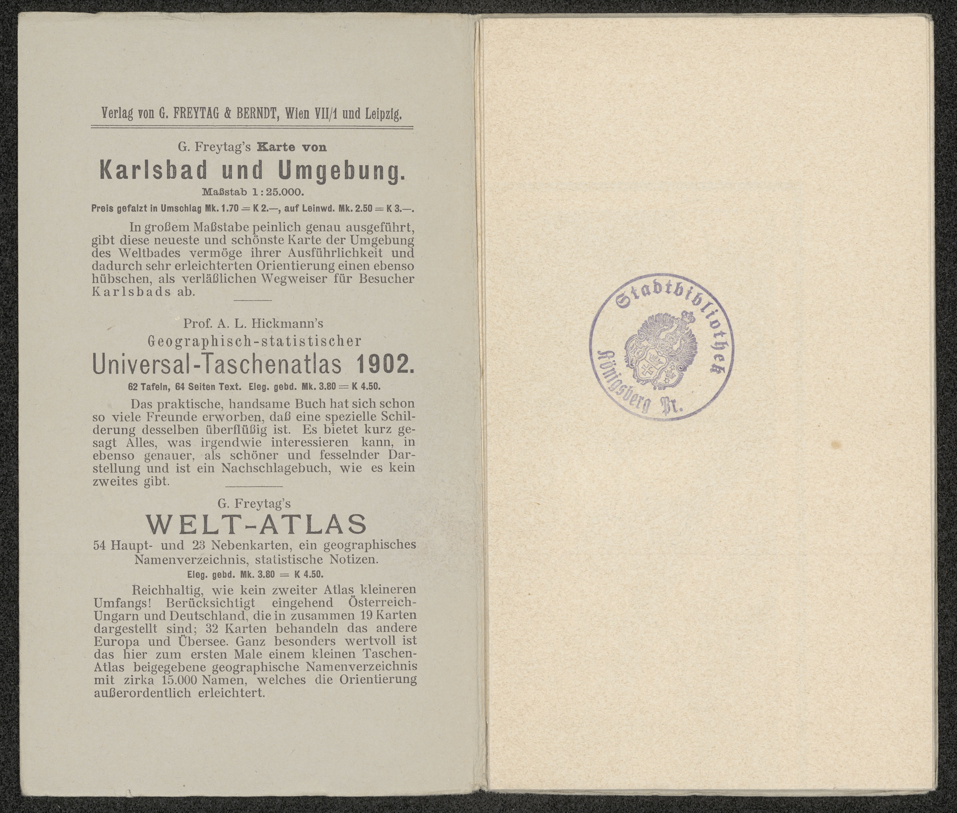 Karte von Marienbad und Umgebung.. - pieczątka: Stadtbbliothek Königsberg Pr.