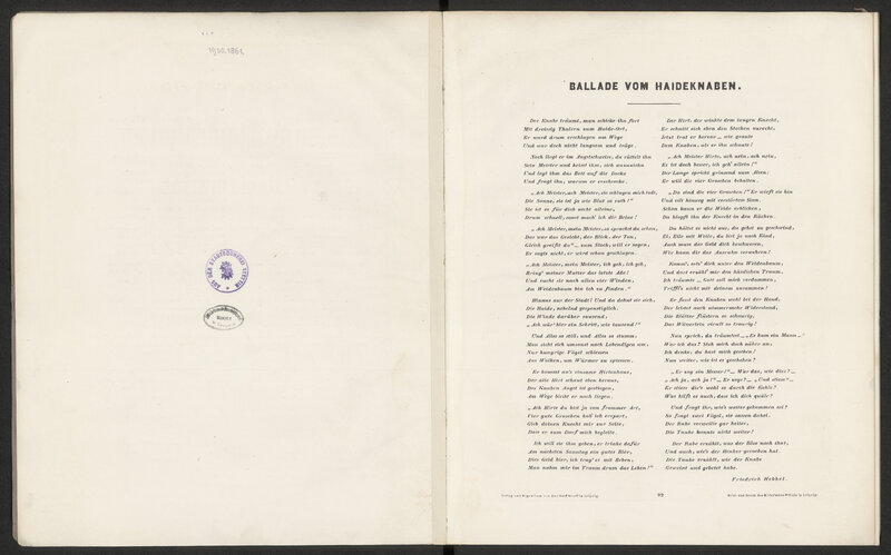 Ballade vom Haideknaben von F. Hebbel für Declamation mit Begleitung des Pianoforte componirt und Herrn Carl Debrois von Bruyk : op. 122 - karta tytułowa verso