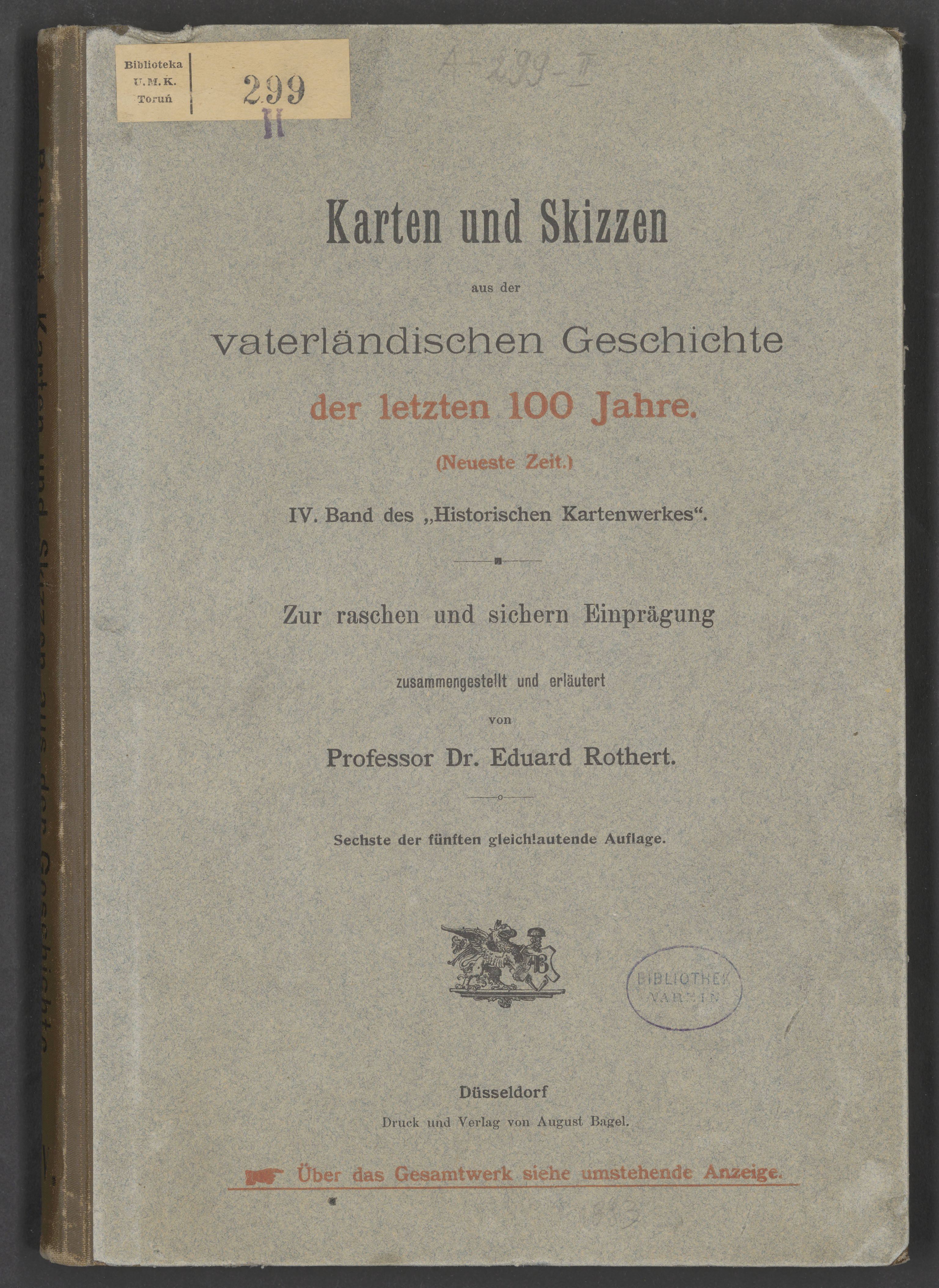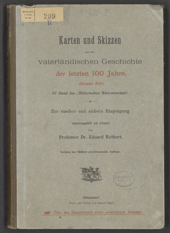 Part of Karten und Skizzen aus der vaterländischen Geschichte der letzten 100 Jahre. (Neueste Zeit.) : IV. Band des "Historischen Kartenwerkes". / Zur raschen und sichern Einprägung / zusammengestellt und erläutert von Professor Dr. Eduard Rothert. / Sechste der fünften gleichlautende Auflage