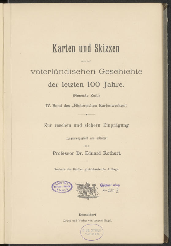 Part of Karten und Skizzen aus der vaterländischen Geschichte der letzten 100 Jahre. (Neueste Zeit.) : IV. Band des "Historischen Kartenwerkes". / Zur raschen und sichern Einprägung / zusammengestellt und erläutert von Professor Dr. Eduard Rothert. / Sechste der fünften gleichlautende Auflage