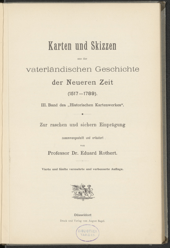 Part of Karten und Skizzen aus der Vaterländischen Geschichte der Neueren Zeit (1517-1789) : III. Band des "Historischen Kartenwerkes" / zur raschen und sichern Einprägung zusammengestellt und erläutert von Professor Dr. Eduard Rothert. / Vierte und funfte vermehrte und verbesserte Auflage