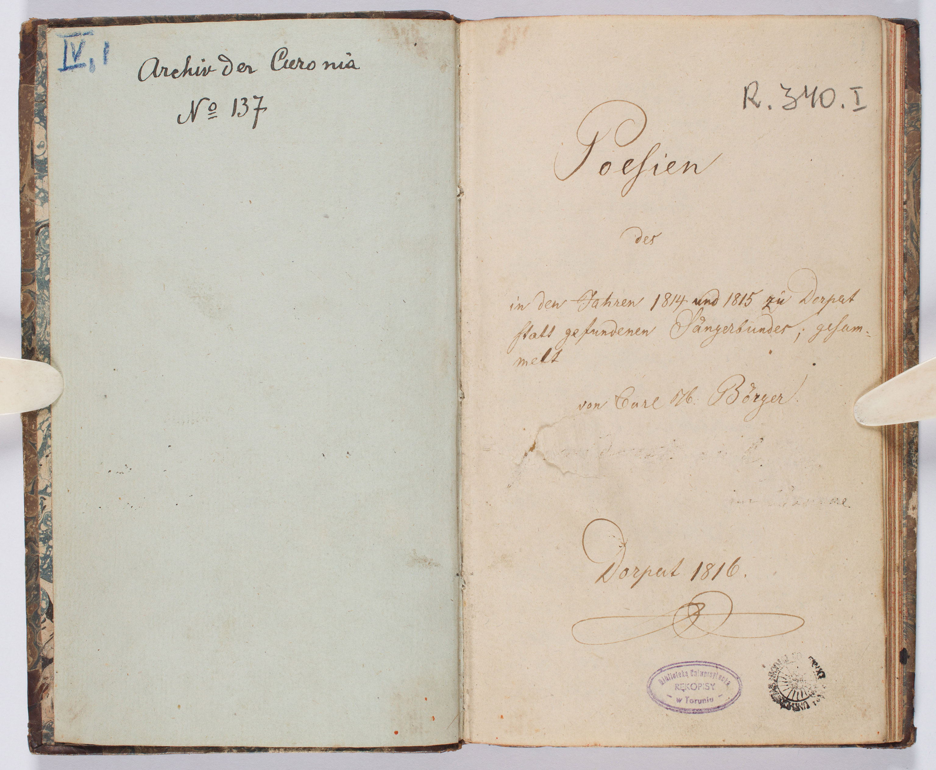 Poesien des... zu Dorpat Statt gefundenen Sägerbundes, gesammelt /von... - karta ochronna verso i strona tytułowa