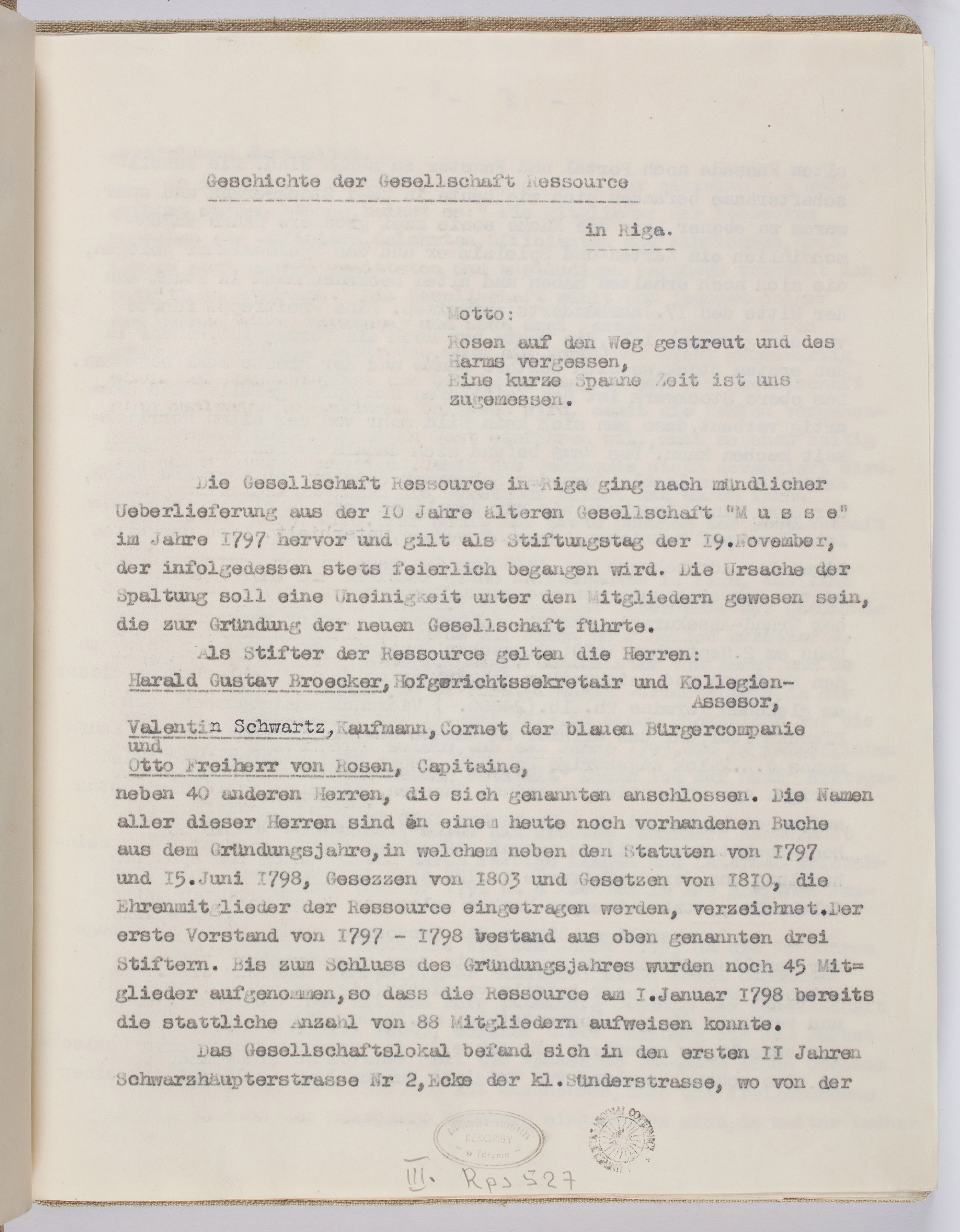 Part of Die Geschichte der Gesellschaft Ressource in Riga (1797-1932)