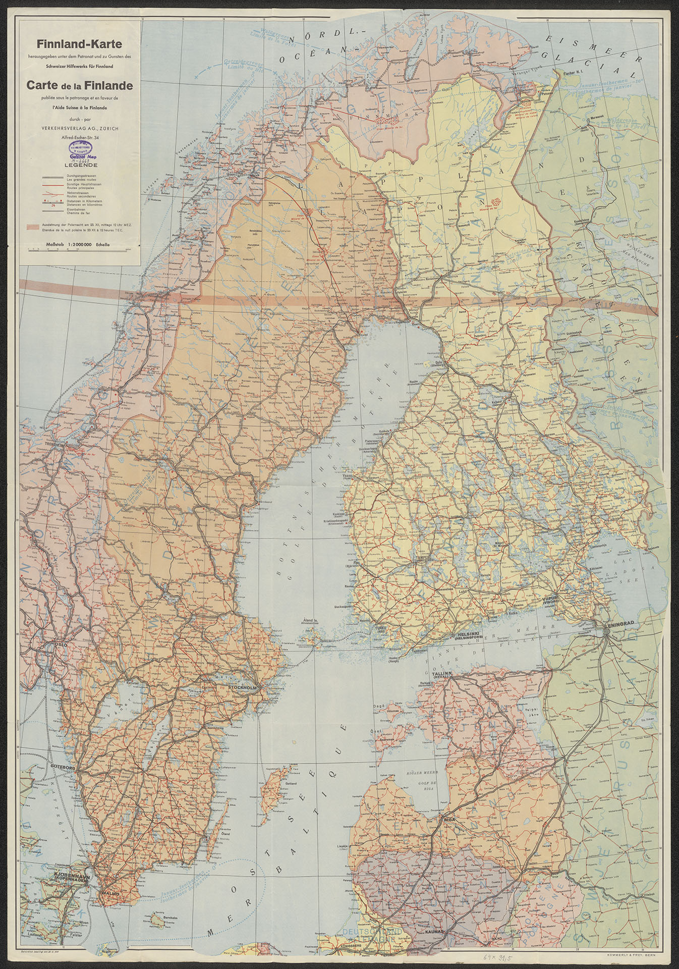 Part of Finnland-Karte herausgegeben unter dem Patronat und zu Gunsten des Schweizer Hilfswerks für Finnland 1:2 000 000