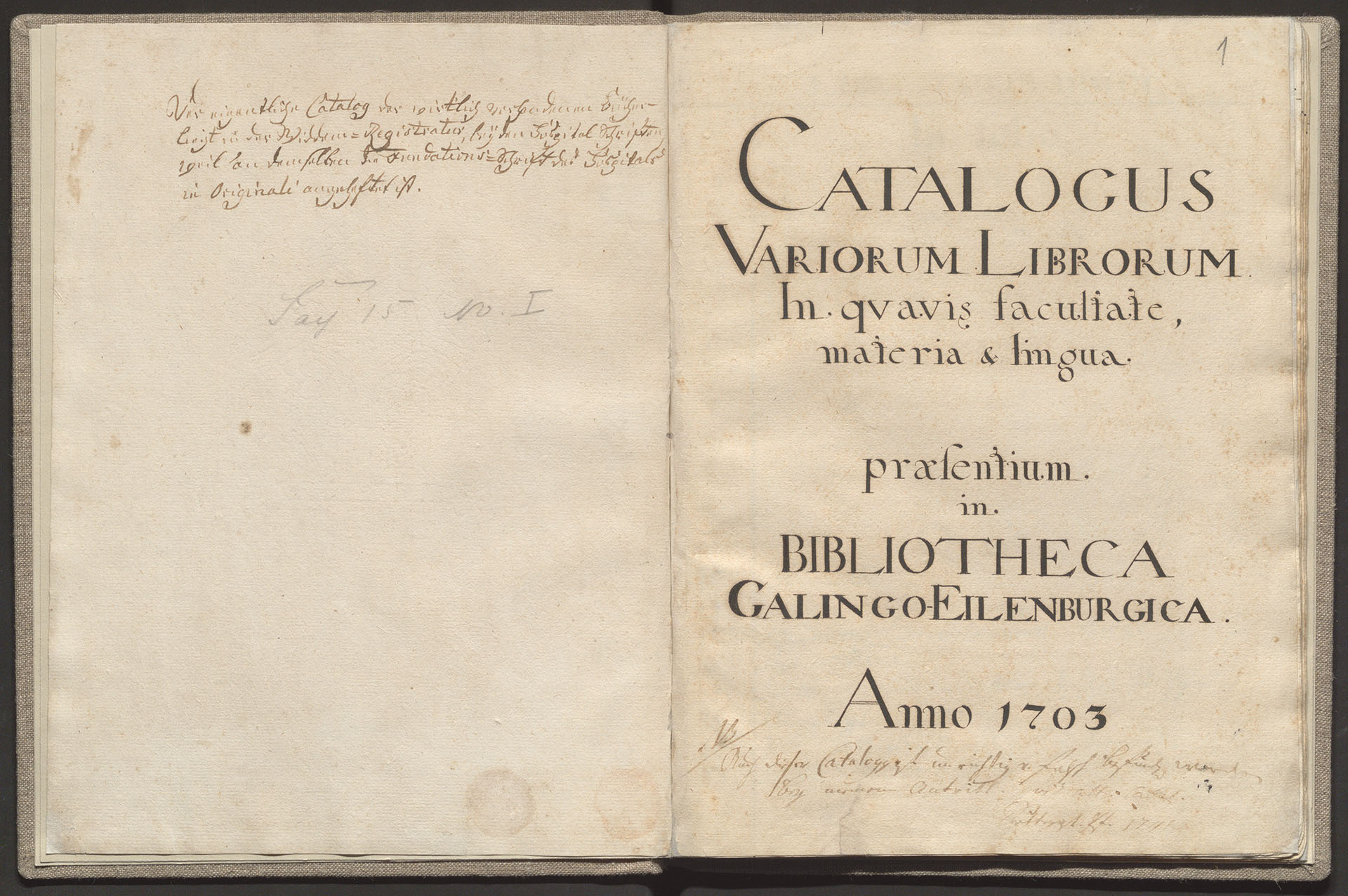 Part of Catalogus variorum librorum in quavis facultate, materia et lingua praesentium in bibliotheca Galingo-Eilenburgica