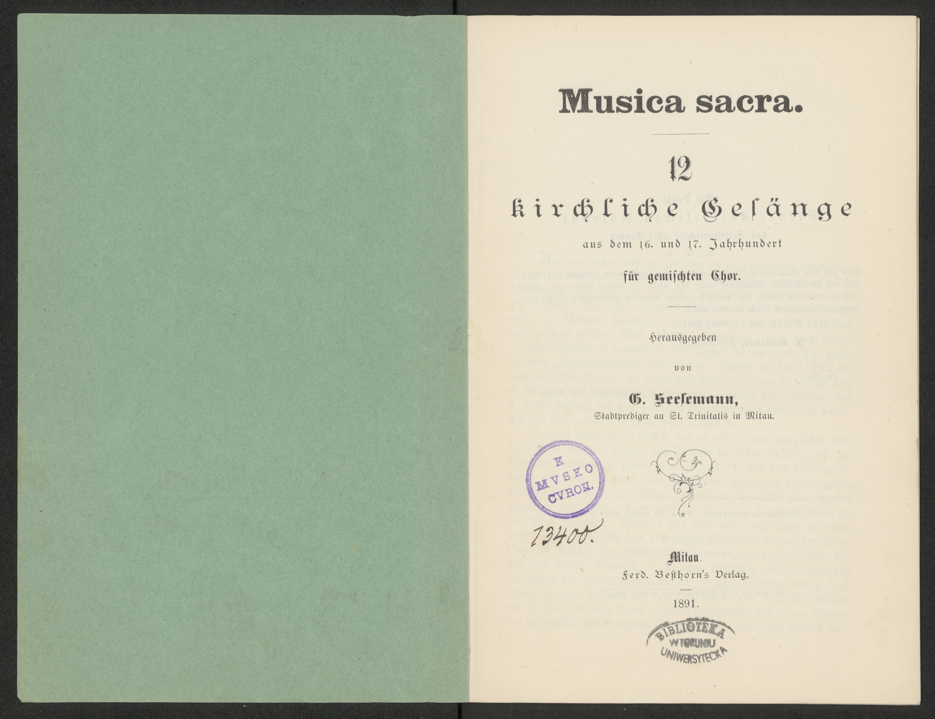 Musica sacra. 12 kirchliche Gesänge aus dem 16. und 17 Jahrhundert... - strona tytułowa