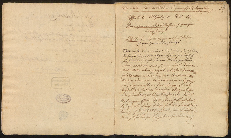 Vorlesungen über das in älteren u[nd] neueren Gesezsammlungen, Edicten, Rescripten, Circularen enthaltene preusz[ische] Recht nach Ordnung der Gesezbuchs für die pr[eussische] Staaten - ośmioboczna pieczątka Stadtbibliothek Koenigsberg (karta 1r)