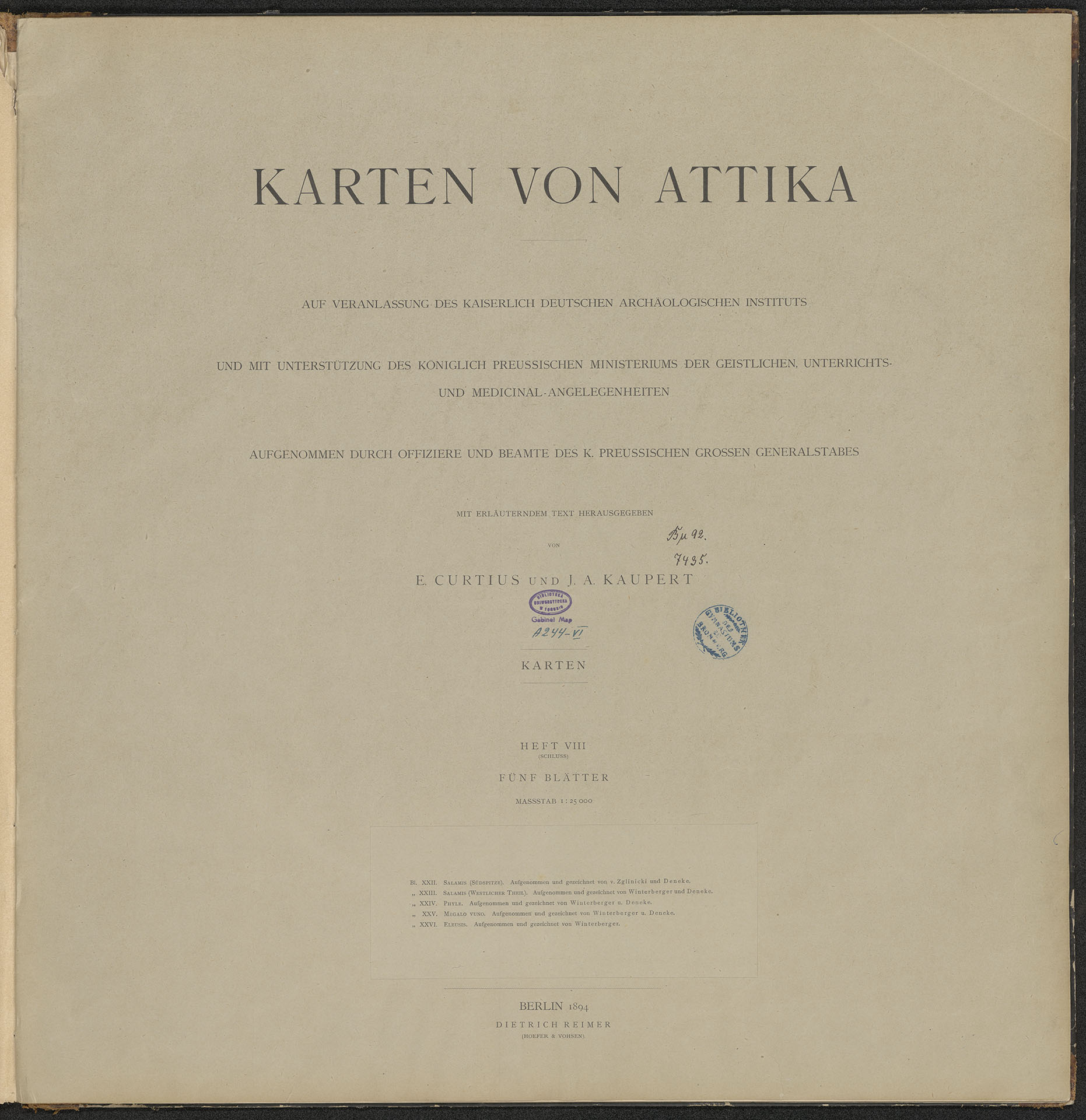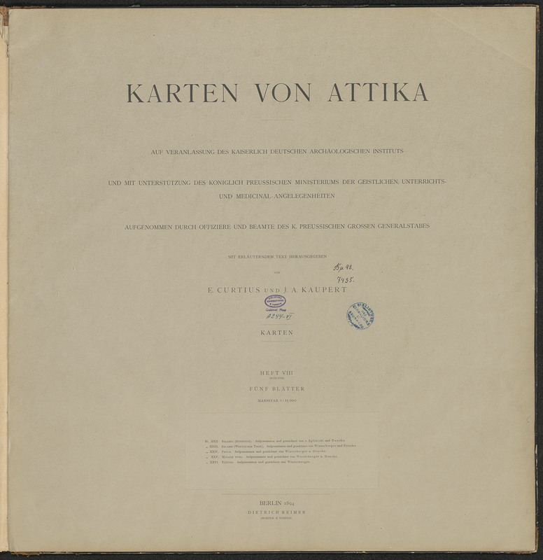 Karten von Attika - strona tytułowa z pieczątką okrągłą: Bibliothek des Gymnasiums zu Bromberg