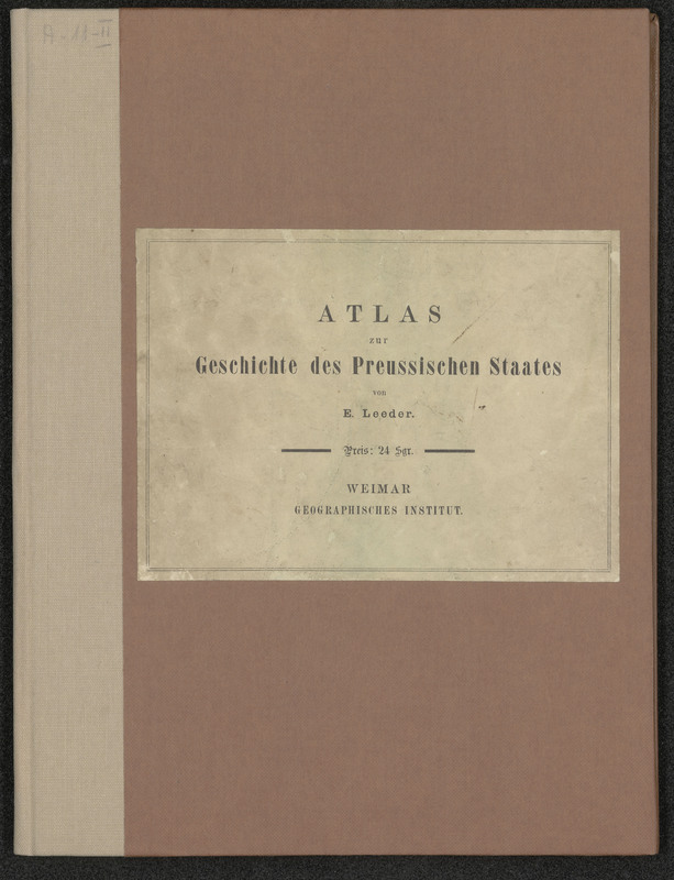 Atlas zur Geschichte des Preussischen Staates in 10 Blatt. : Zum Schulgebrauche bearbeitet und allen Freunden der Preussischen Geschichte gewidmet von E. Leeder Lehrer an der Bürgerschule zu Görlitz - okładka górna