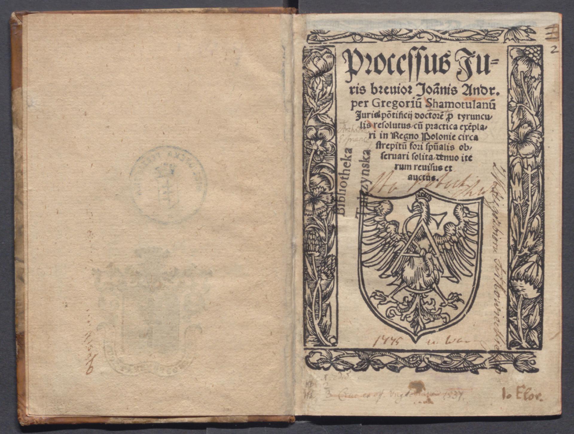 Processus iuris brevior Ioannis Andreae pro tirunculis resolutus - strona tytułowa