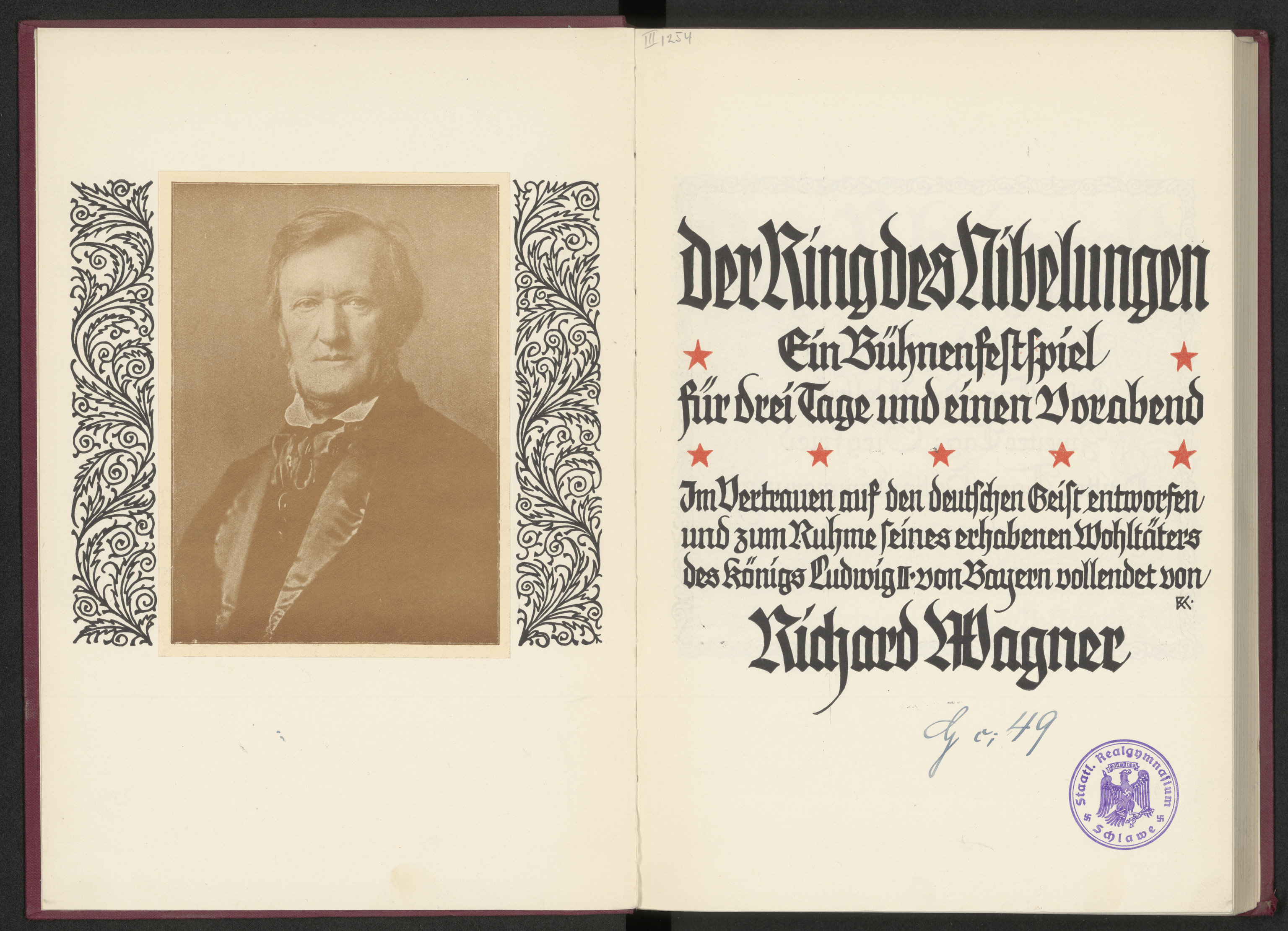 Das Reingold. Vorabend der Ring des Nibelungen. Vollständiger Klavier-Auszug von Karl Klindworth - karta z pieczątką okrągłą: Bismarckplatz