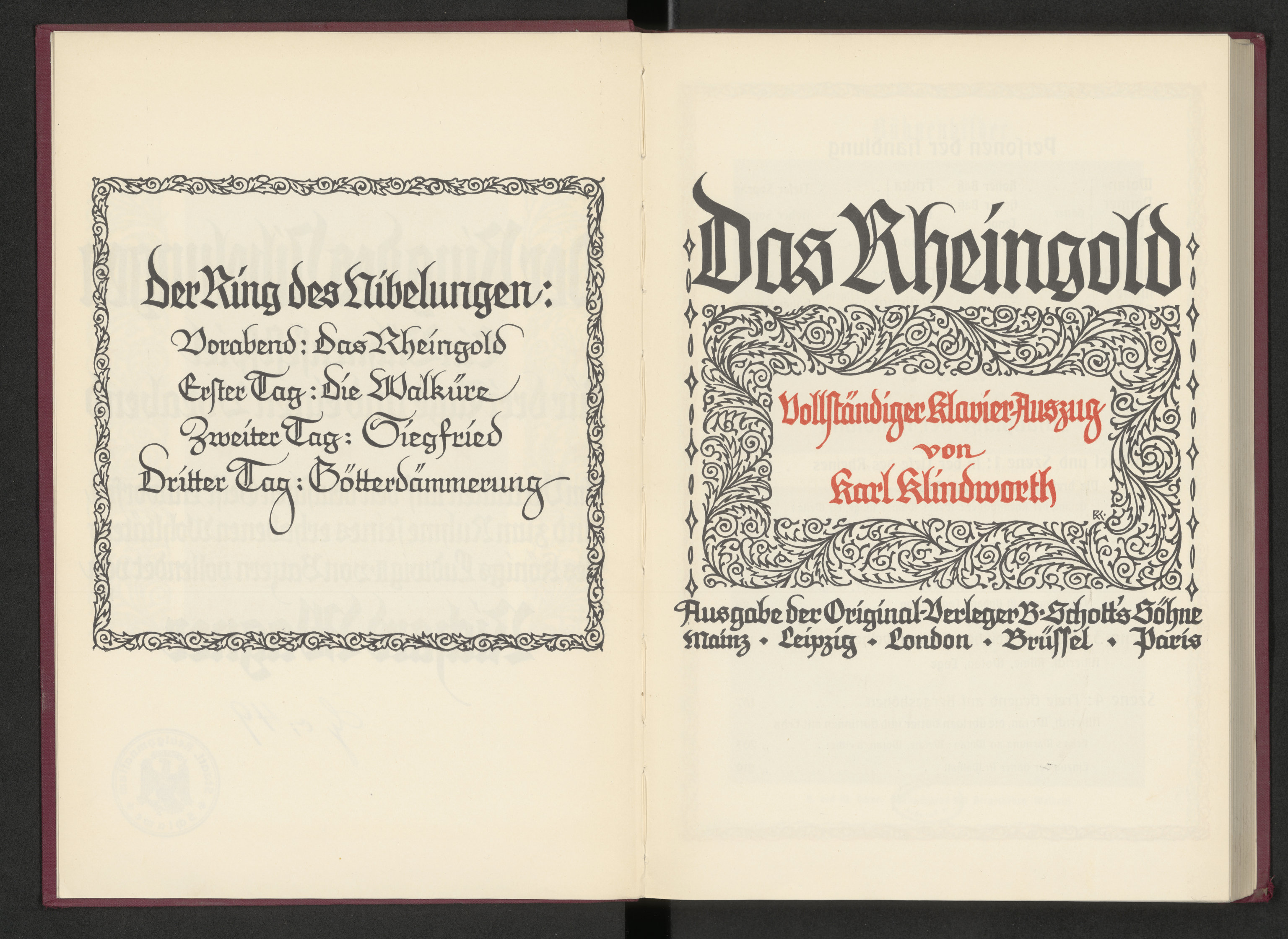 Part of Das Reingold. Vorabend der Ring des Nibelungen. Vollständiger Klavier-Auszug von Karl Klindworth